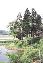 田沢字上町地内にあり、根周2.78メートル、目通り幹囲1.1メートル、約5メートル上部で側枝を分かち、西側に20度傾斜しています。高さは16メートルにおよんでおります。